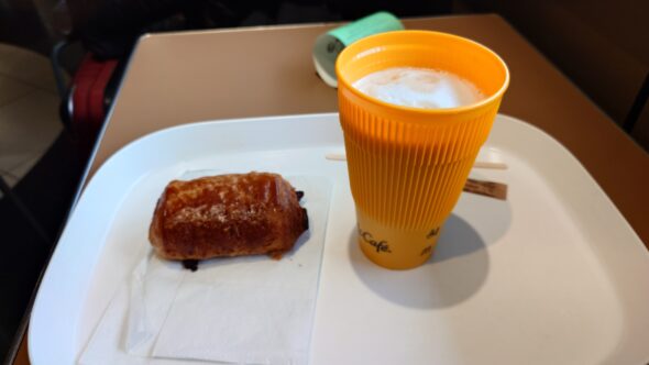 With time to spare, I sat at McCafé, ordered a latte and a pain au chocolat, and used the slow Wi-Fi to write travel notes. It was quiet, uneventful, and exactly what I needed before the next leg.