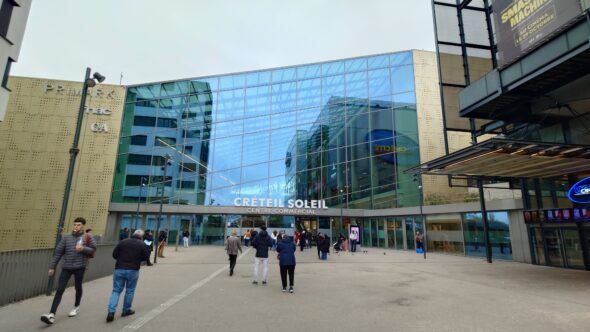 ここはパリ郊外の行政区で、駅前には「Créteil Soleil(クレテイユ・ソレイユ)」という巨大ショッピングモールが広がっています。駅には珍しくエスカレーターがあり、キャリーケースを持っていても移動が楽。中心部の駅が階段ばかりだったことを思うと、これだけで少し救われます。