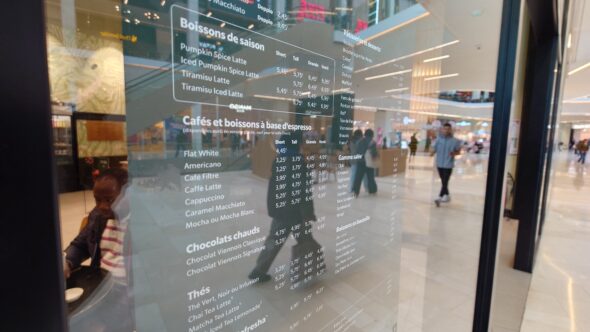食後は2階のスターバックスへ。アメリカンコーヒーが3.5ユーロとやや高めですが、節約旅行中でも一息つける安心感があります。店内は混み合っていたが、Wi-Fiも安定しており、ノートを開いて少し作業を進めました。