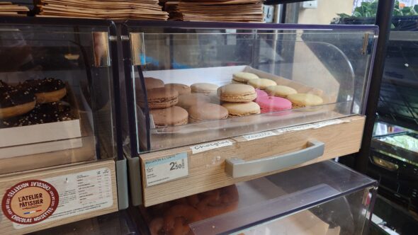 途中のカルフールでマフィン(1.5€)と大きいマカロン(2.5€)を購入しました。
