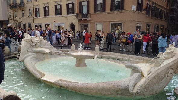 美術館を後にしてボルゲーゼ広場を歩き、そのままスペイン広場へ。すでに人でごった返しており、観光というより「人を見に来た」ような気分になりました。観光客の多くは欧米人で、時折中国人、日本人の姿が混ざる程度。ユーロ圏内の旅行者が大半なのでしょう。