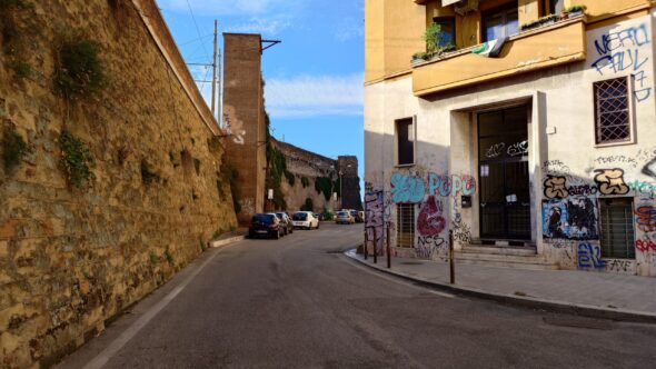 最後はコロッセオへ。疲れもあり、外観を少し眺める程度で切り上げることにしました。その後トラムに乗ったのですが、降りる場所を間違えてしまい、ローマ・テルミニ駅の北東側に出てしまいました。