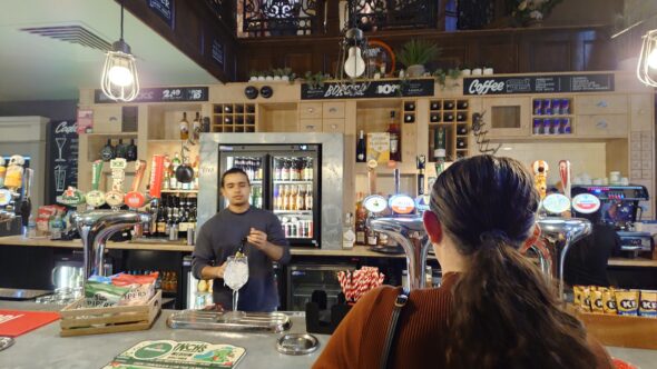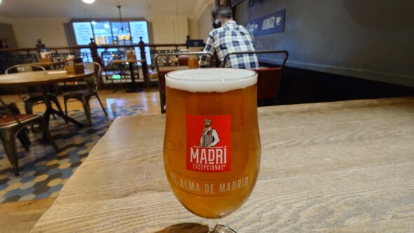 カウンターでMadriビールを1パイント注文します(約7.5ポンド)。