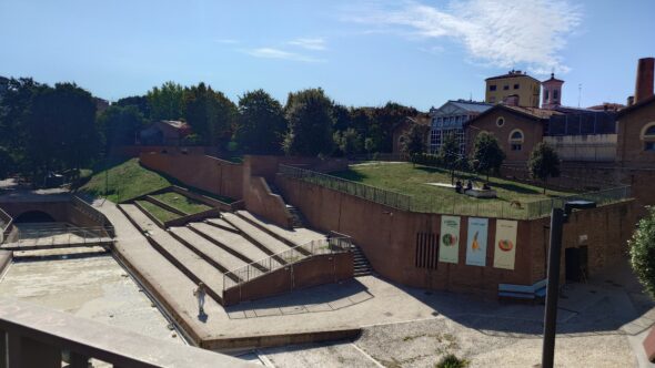 その後はカヴァティッチョ公園へ。ベンチに座る学生やカップルを眺めながら休憩。大学の街ボローニャらしく若者が多いです。
