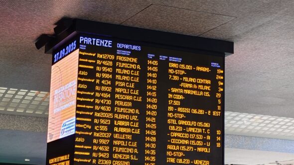 テルミニ駅には余裕を持って到着したものの、掲示板に「フィレンツェ経由」と書かれているのを見落としました。ホームが分からず乗り遅れ、55ユーロ(約8,800円)の追加出費に。