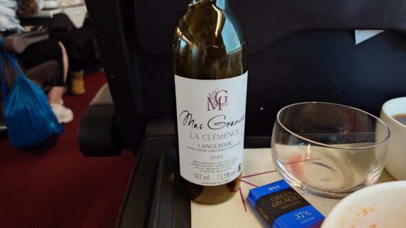 • 今回は赤ワインの小瓶(銘柄は “Mas Granier AOP languedoc” のようでした)を選択